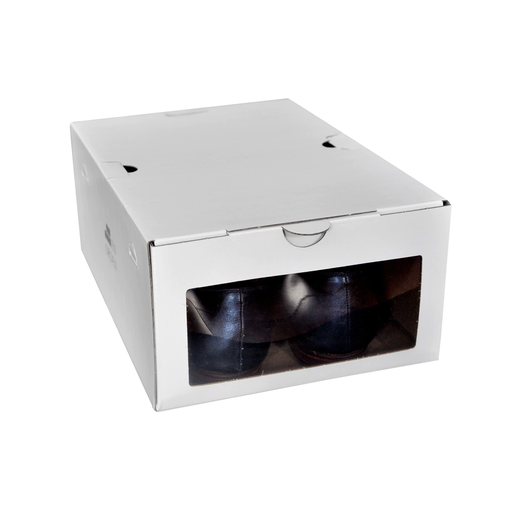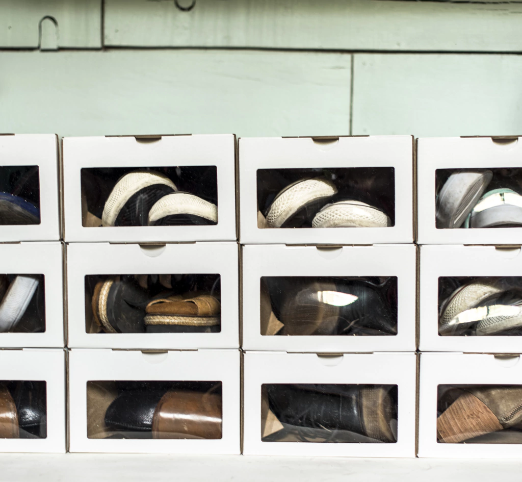 Todas nuestras cajas tienen un visor transparente que permite encontrar rápidamente el par deseado, apertura frontal que facilita la tarea de guardar y sacar pestañas de apilado para que no se desplacen, encastrando unas con otras.