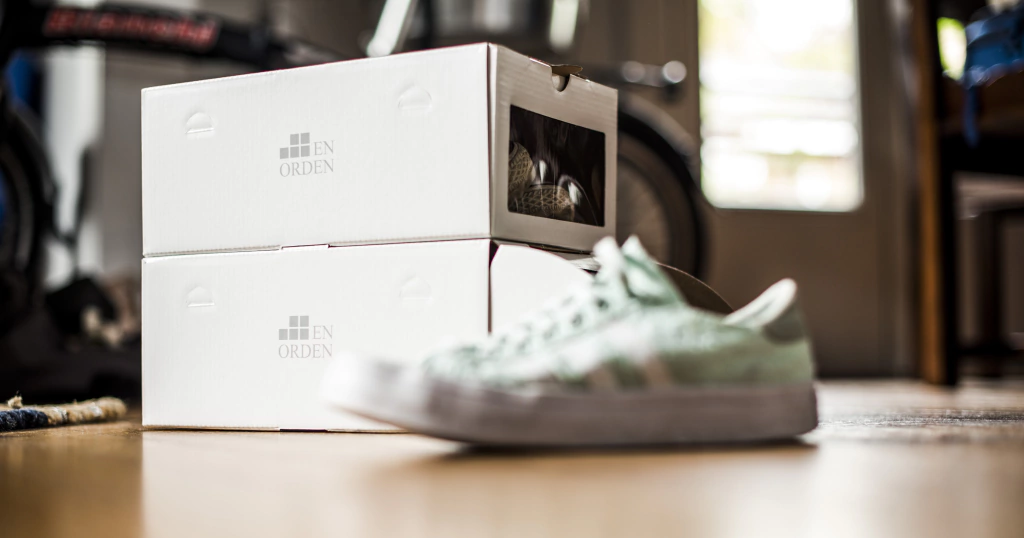 Pack de 12 unidades de cajas organizadoras para zapatos standard hasta el talle número 40 de EnOrden. Mantené ordenadas de forma limpia y organizadas tus pares de zapatillas, botas, sandalias, ojotas y cualquier calzado que tengas en estos organizadores hechos de cartón mientras colaboras con el medioambiente.